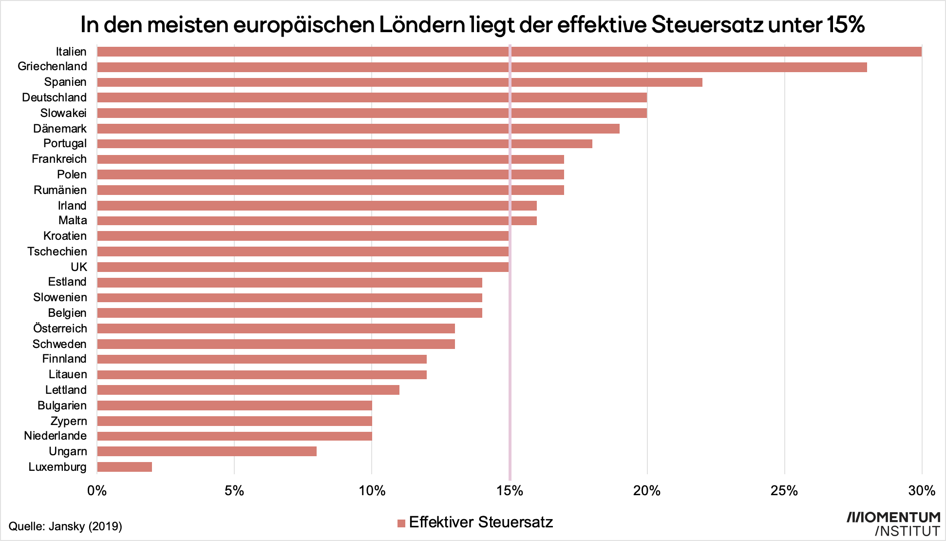 Eine Mindeststeuer von 15% klingt niedrig, aber die Grafik zeigt: Selbst in Österreich ist eine effektive Besteuerung von 15% noch nicht Realität.