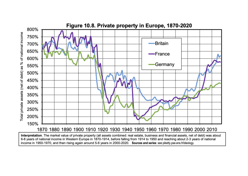 Kapitel 2 präsentiert „die Gesellschaften nach europäischem Muster“ als eine Form von Gleichgewicht zwischen der Rechtmäßigkeit der intellektuellen und kriegerischen Eliten einerseits und spezifischen Machtverhältnissen andererseits. Sowohl die intellektuell-religiöse Klasse, als auch die militärisch-kriegerische Klasse verfügen über Vermögen, sowie über die politische Entscheidungsgewalt. Die Legitimation für diese Anhäufung von Vermögen und politischer Macht besteht in den politischen und religiösen Pflichten, die diese Klassen gegenüber der Gesellschaft zu erfüllen haben. Kapitel 3 fokussiert sich auf die Entstehung von „proprietären Gesellschaften“ [„sociétés de propriétaires“] und der französischen Revolution, welche versuchte eine radikale Trennung von Recht auf Eigentum (zumindest oberflächlich allen offenstehend) und dem Recht des Souverän (unter staatlichem Monopol) zu etablieren. Obwohl es in dieser Zeit Vorschläge für vergleichsweise stark progressive Steuern gab, konnten diese nicht durchgesetzt werden. Die Entstehung eines zentralisierten Staates untergrub gleichzeitig die Legitimation von Adel und Klerus. Wozu brauchen wir noch eine militärisch-kriegerische Klasse, wenn die Sicherheit durch Polizei und Armee bereitgestellt wird? Wozu brauchen wir die intellektuell-religiöse Klasse, wenn wir „Wissenschaft“ haben?