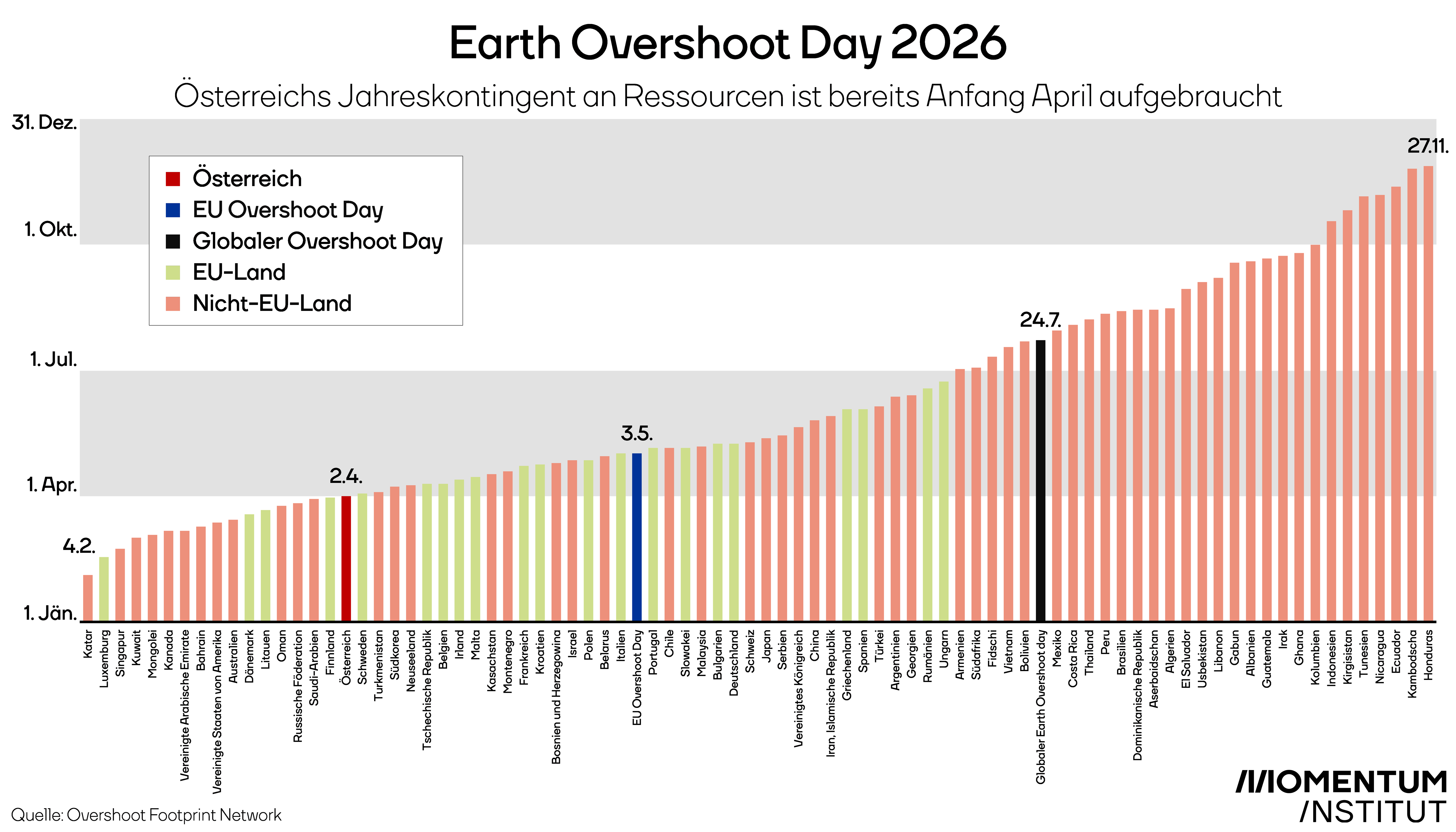 Anmerkung: Dass der österreichische Erdüberlastungstag dieses Jahr um 4 Tage später stattfindet als 2025 liegt nicht am sinkenden Rohstoffverbrauch, sondern an einer technischen Änderung in der Methodik des Overshoot Footprint Networks.