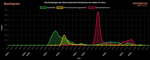 Das Parlagram des Momentum Instituts macht die Debatten im österreichischen Nationalrat für die Vielen durchsuchbar. Worüber reden die gewählten Volksvertreterinnen und Volksvertreter im Parlament eigentlich? Welche Themen und Anliegen finden Gehör, was bleibt im wörtlichen Sinne unerwähnt? Finde es heraus.